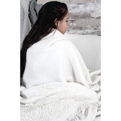 Jeté naturel lavé en mousseline de coton 100% avec couvertures d'emmaillotage en mousseline à franges faites à la main