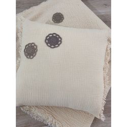 100% coton mousseline Y/D taie d'oreiller avec dentelle faite à la main décoration de la maison taie d'oreiller multicolore lin canapé housses de coussin